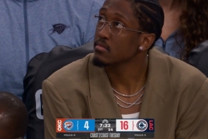 心急如焚!雷霆开局4-16落后快船 镜头给到雷霆二当家杰伦威