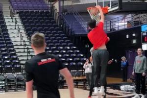 小吧现场直击杨瀚森G联盟 早早到场单独热身了很久 体态很轻盈啊