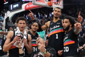 马刺本周在与76人、活塞、快船和火箭的比赛中合计净胜84分,场均砍下128.3分。
