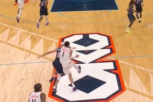 布克反击时撞倒卡鲁索被吹进攻犯规 裁判回看后没有升级