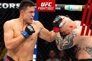 直播吧04月27日讯 UFC格斗之夜今日在堪萨斯城进行,轻重量级联合主赛,张名扬仅用4分钟TKO“狮心”史密斯,进入UFC三场比赛全部首回合完成终结!