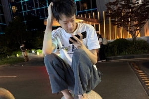 Heng抓拍前队友Shanks光脚蹲坐在街边石墩上,配文:抓乞丐!