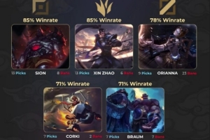 直播吧10月22日讯 外媒统计S15全球总决赛至今为止各位置胜率最高英雄,具体如下: