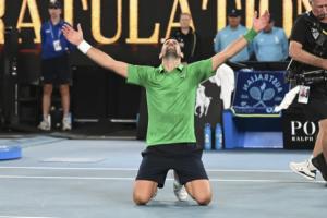 直播吧1月31日讯 澳网男单半决赛,德约3-2战胜辛纳,晋级澳网男单决赛。德约将冲击澳网第11冠和自己的第25座大满贯。