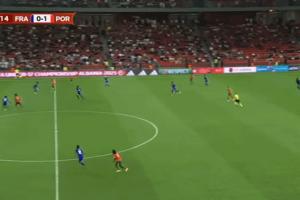 这球展现了他速度和跑位意识上的优势,在队友还未头球摆渡时,他已经启动前插,得球后头球向前一顶,身旁的法国U17后卫根本拉不住他,随后的终结,也非常冷静。