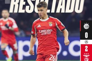 直播吧11月26日讯 凌晨欧冠联赛阶段,本菲卡客场2-0战胜阿贾克斯,终于获得本赛季欧冠首胜。