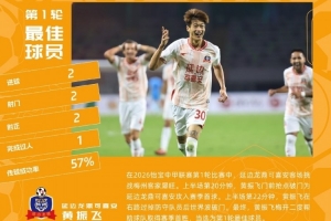 直播吧3月18日讯 联赛第1轮结束后,中甲官方公布了本轮的最佳球员,延边龙鼎球员黄振飞当选。黄振飞本轮上演梅开二度,帮助球队取得开门红。