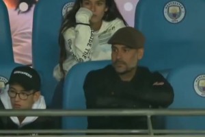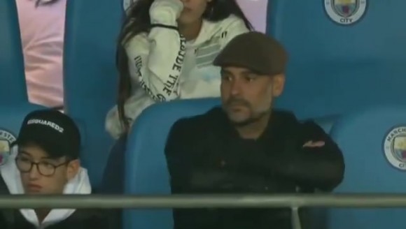 瓜迪奥拉看台化身谢尔比,头上的女儿一脸生无可恋